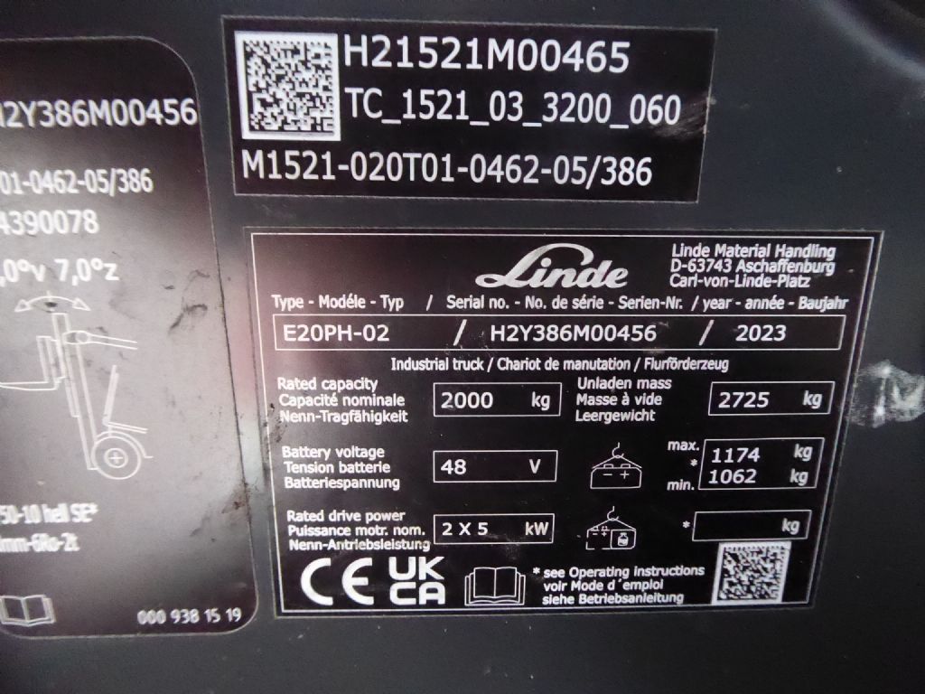 Hersteller: Linde Typ: E20PH-02 Bauart: Elektro 4 Rad-Stapler Antriebsart: Elektro Tragkraft: 2000 kg Baujahr: 2023 Stunden: 811 Zustand: gut |