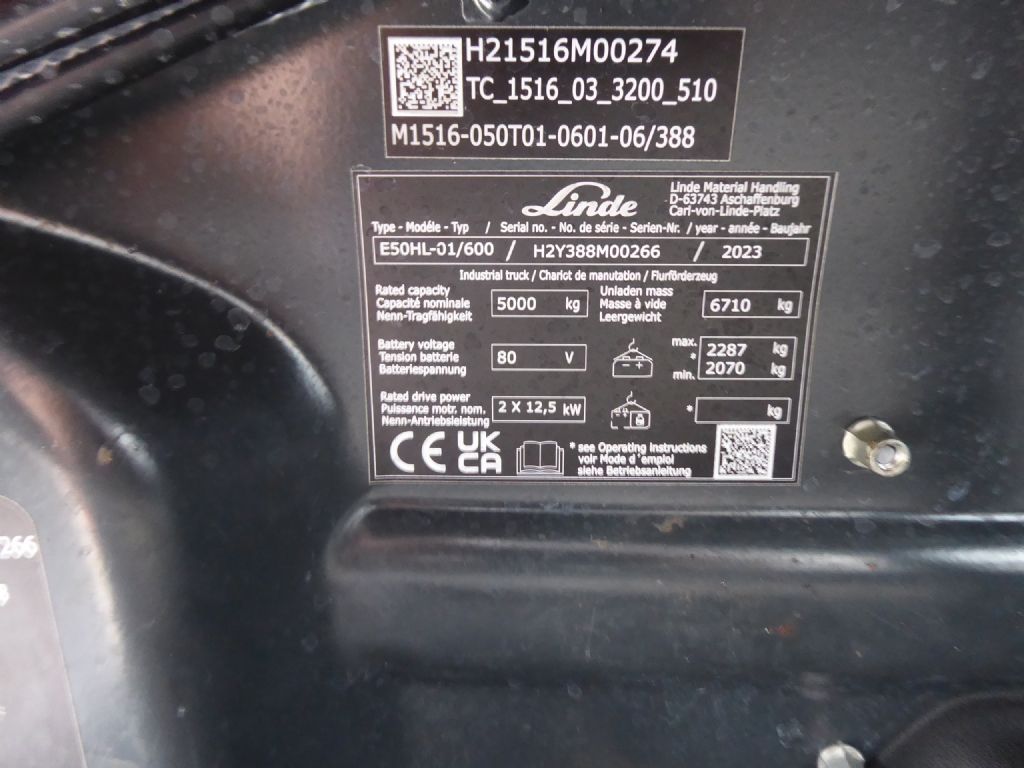 Hersteller: Linde Typ: E50HL-01/600 Bauart: Elektro 4 Rad-Stapler Antriebsart: Elektro Tragkraft: 5000 kg Baujahr: 2023 Stunden: 192 Zustand: Neu |