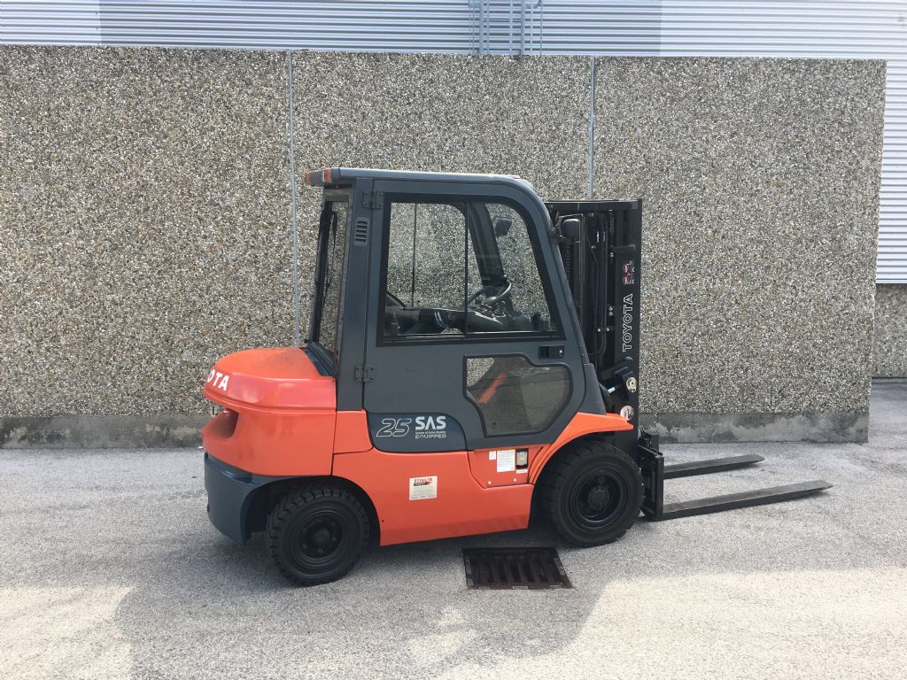 Hersteller: Toyota Typ: 62-7FDF25 Bauart: Dieselstapler Antriebsart: Diesel Tragkraft: 2500 kg Baujahr: 2005 Stunden: 6385 Zustand: sehr gut |