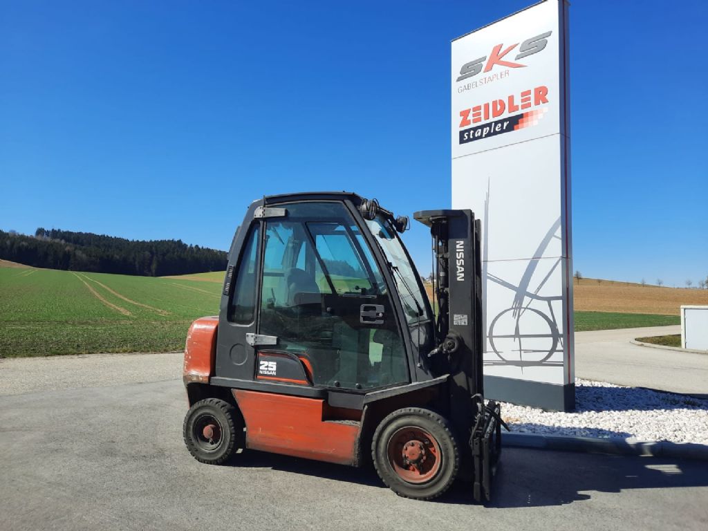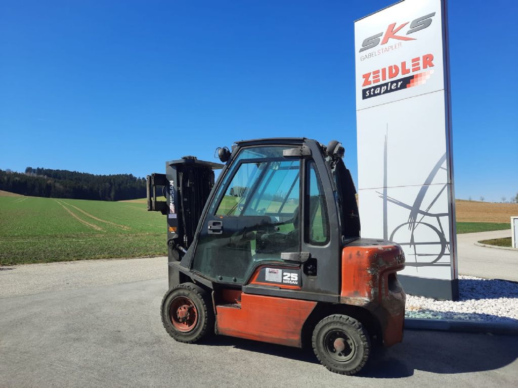 Hersteller: Nissan Typ: FD02A25Q Bauart: Dieselstapler Antriebsart: Diesel Tragkraft: 2500 kg Baujahr: 2003 Stunden: 12637 Zustand: sehr gut |